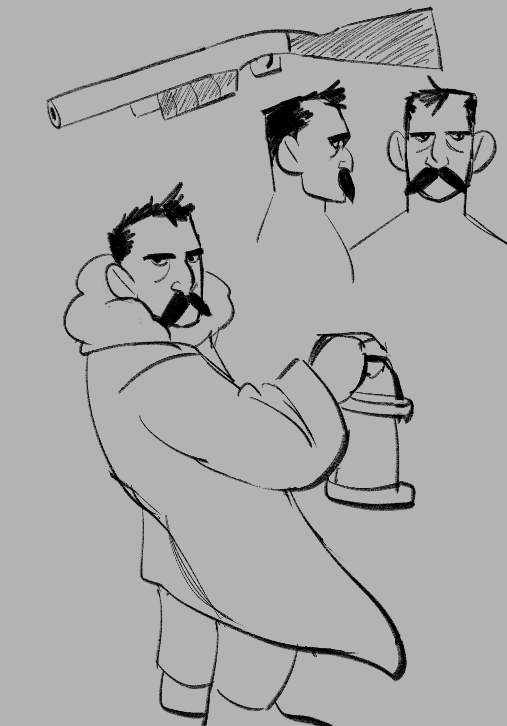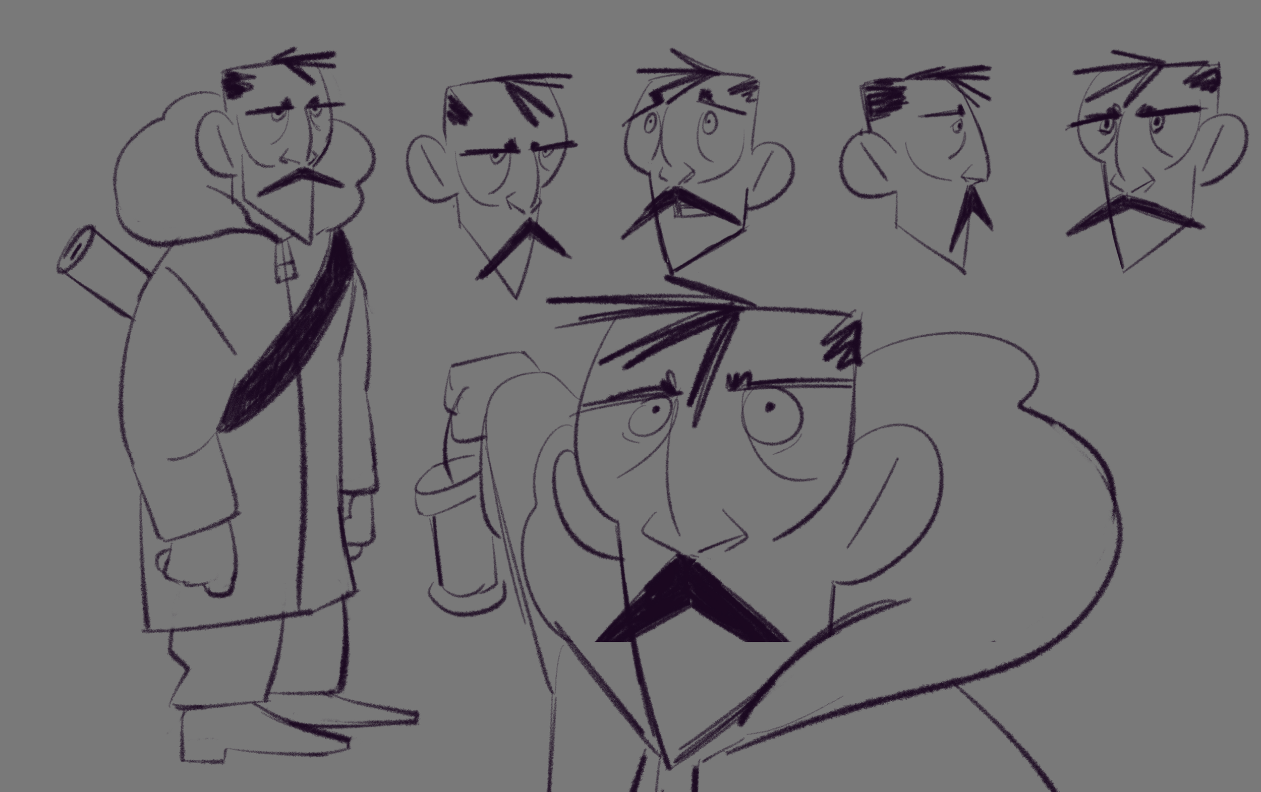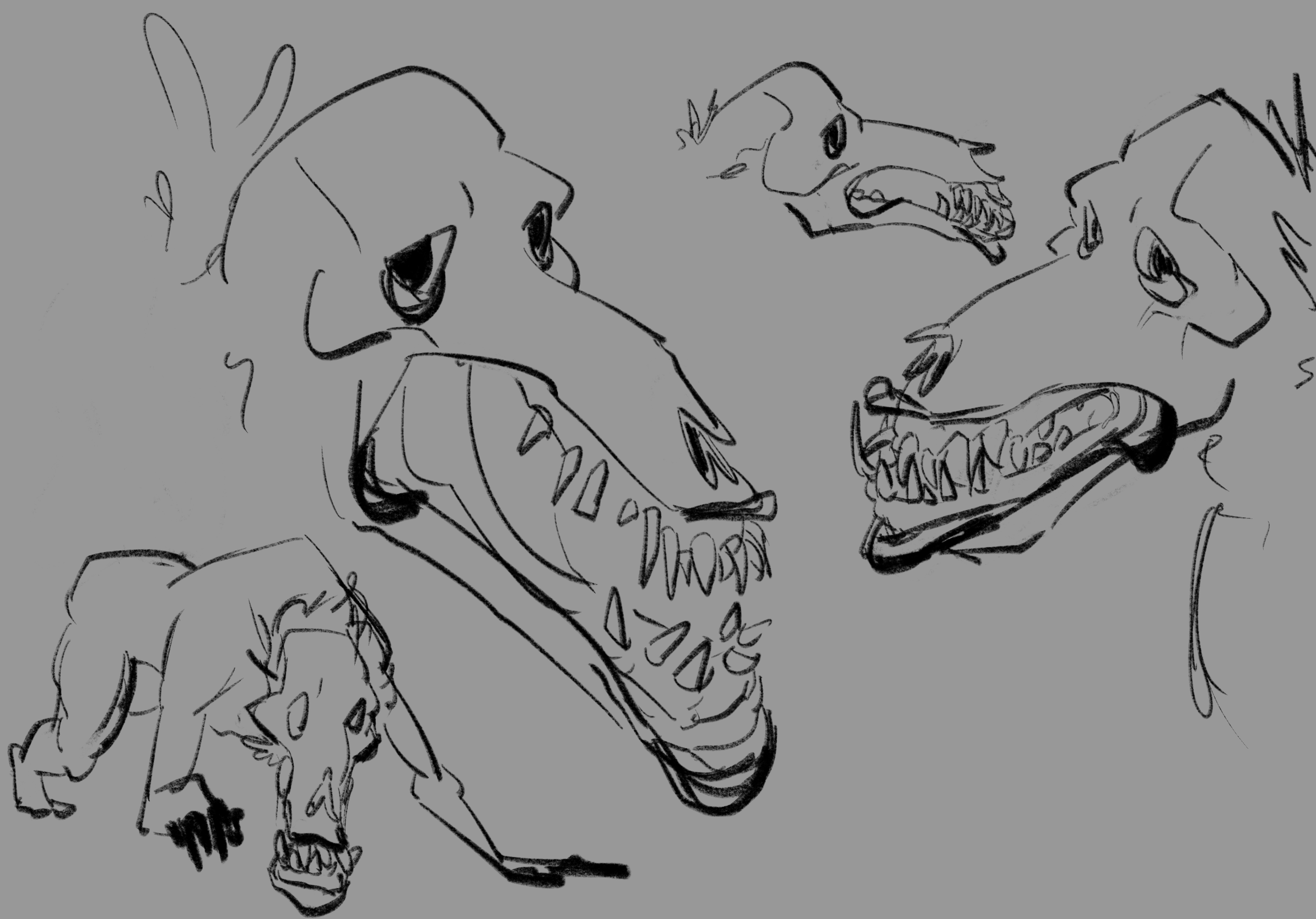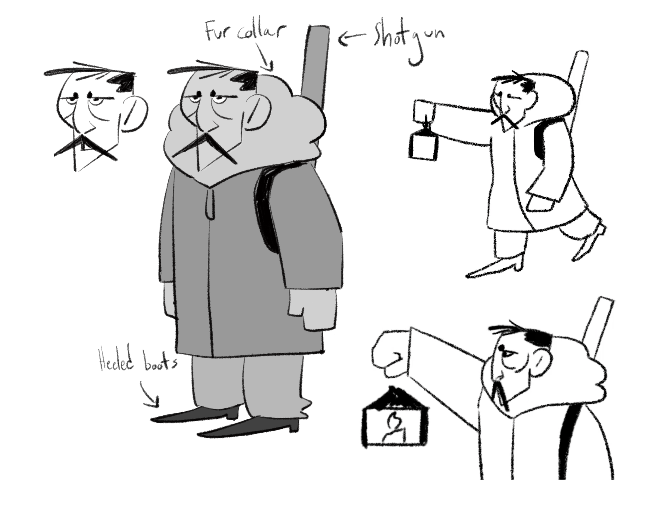 Initial designs of the Hunter and the Creature were more “realistic” and with more nuances. Final designs became more stylized, with more simple, blockier shapes and easily defined landmarks. I specifically liked the original designs of the Creature, but quickly found that it would have been too difficult for to animate, given the limited time and resources.